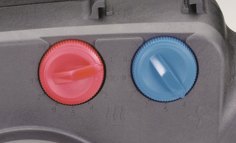 - Мощность нагрева и расход воздуха плавно регулируются потенциометром