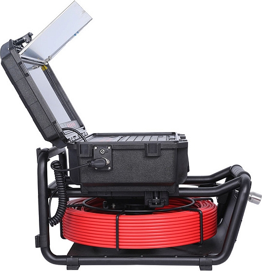 - Головка камеры Ø 29 × 50 мм и проталкиваемый кабель Ø 6,8 мм × 50 м из стекловолокна со счетчиком длины, подходящие для труб Ø 50 – 200 мм, длиной до 50 м